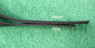 This is actually a photo of the nylon - we will get a poly photo up ASAP! Click any photo for a larger image | We make our heavy duty nylon slings , and these are exactly the same thing, but made with poly webbing instead. Nylon webbing is a hell of a lot more expensive than nylon, and when we started making our Poly bed bonds , our Modular Bed Bondage system , and our Full Body Webbing Harness Restraint out of poly, and everyone said that they enjoyed their purchases, we decided to make our two most popular woven slings out of it as well. I will be 100% honest and tell you that the nylon is a little more comfortable against the skin than poly. At the same time, two points: 1) Poly is far from uncomfortable, and 2) sometimes as Rhett would say, I just don't give a damn! Check the close up photo for a comparison between the two materials. There is plenty of strength in the poly webbing. These are both made with cross hatched stitching wherever the poly crosses, and heat sealed ends which are tucked under an extra fold. This extra work means that these are going to last! An extra benefit is that they are washable too! We think you'll find these very comfortable, and great fun to play in! Our basic slings are 18 X 33 inches in size, jumbo slings are 24 X 38. Chain and clips not included. |